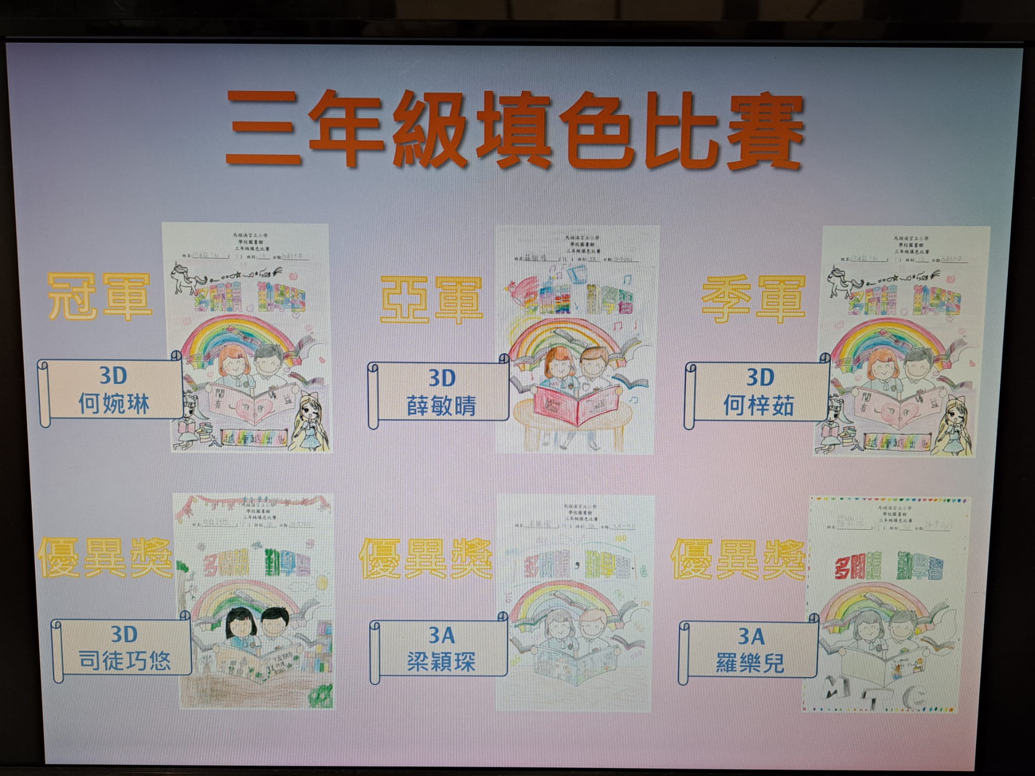 三年級圖書填色比賽冠、亞、季軍及優異奬