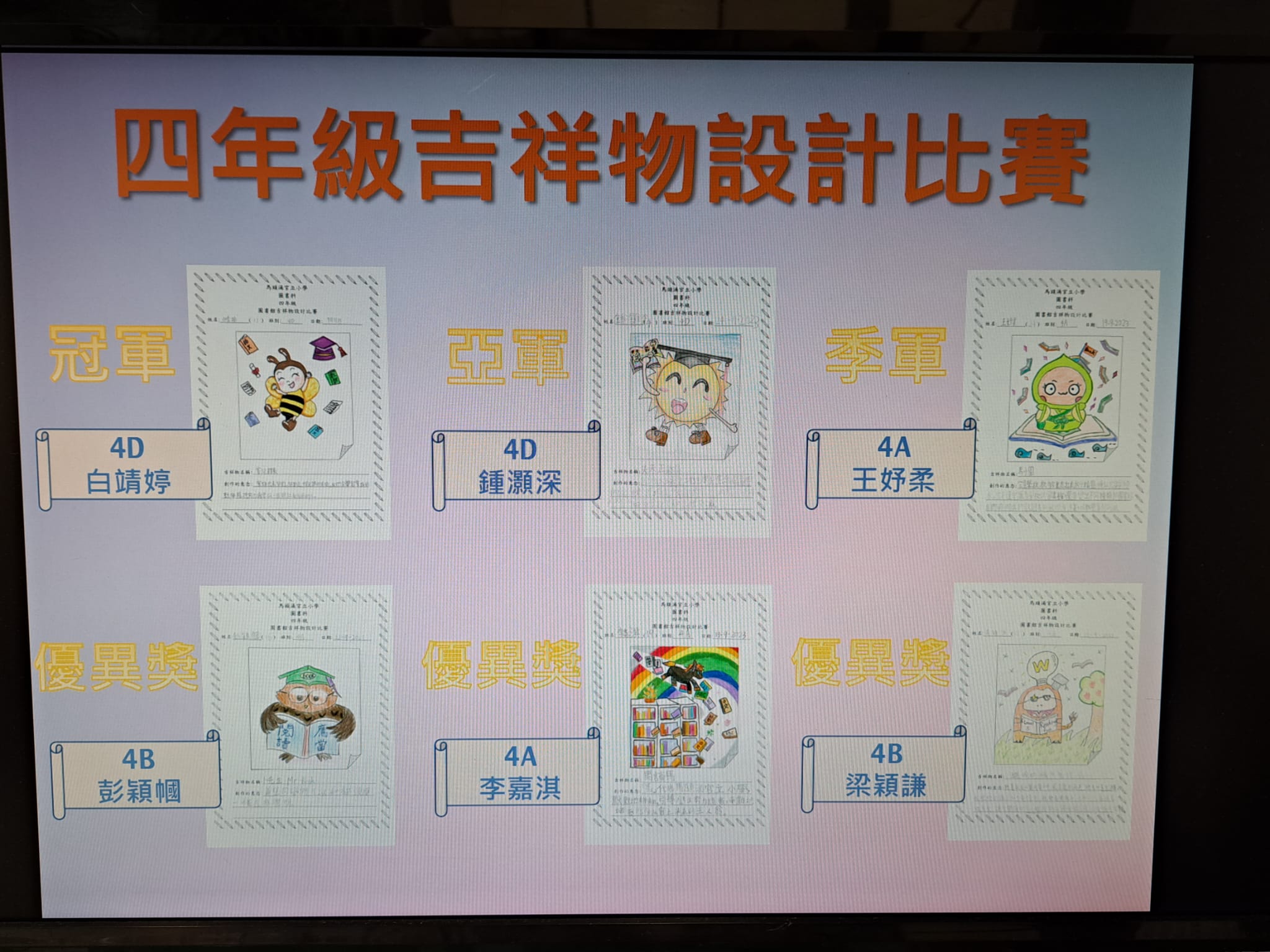 四年級圖書吉祥物設計比賽冠、亞、季軍及優異奬