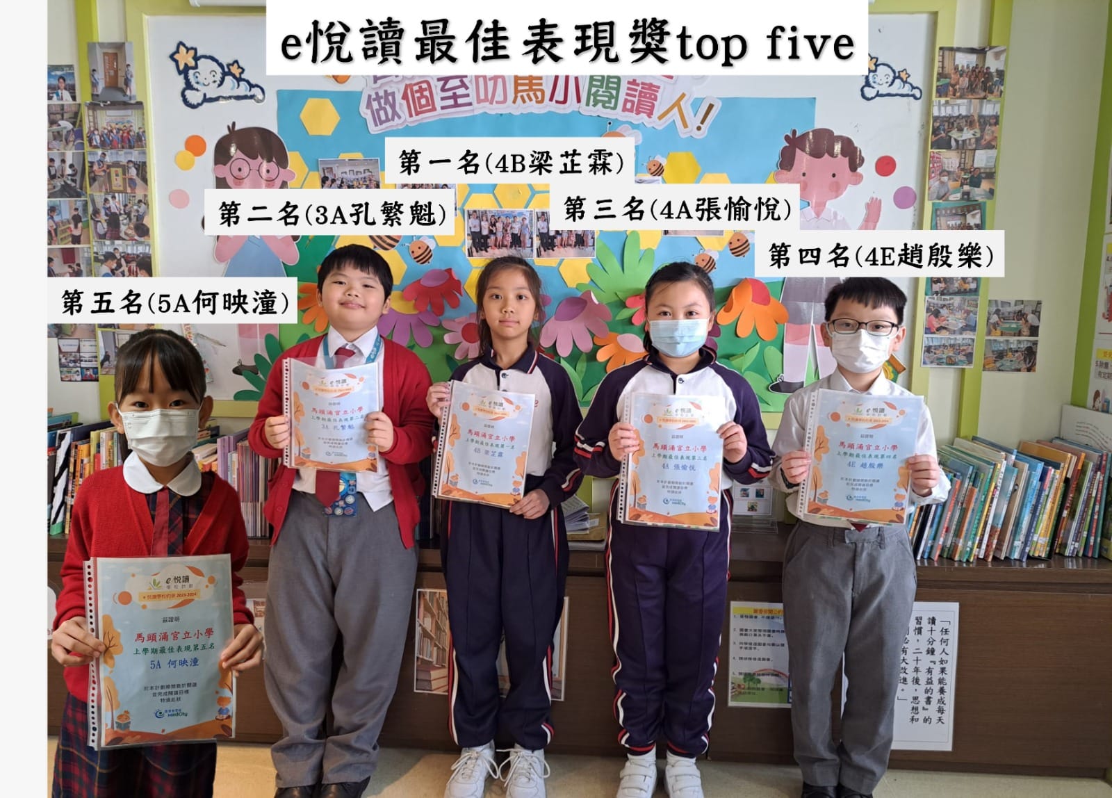 馬小校園借閲之星(全校第1名、第2名及第3名班級4A,2E,1D)