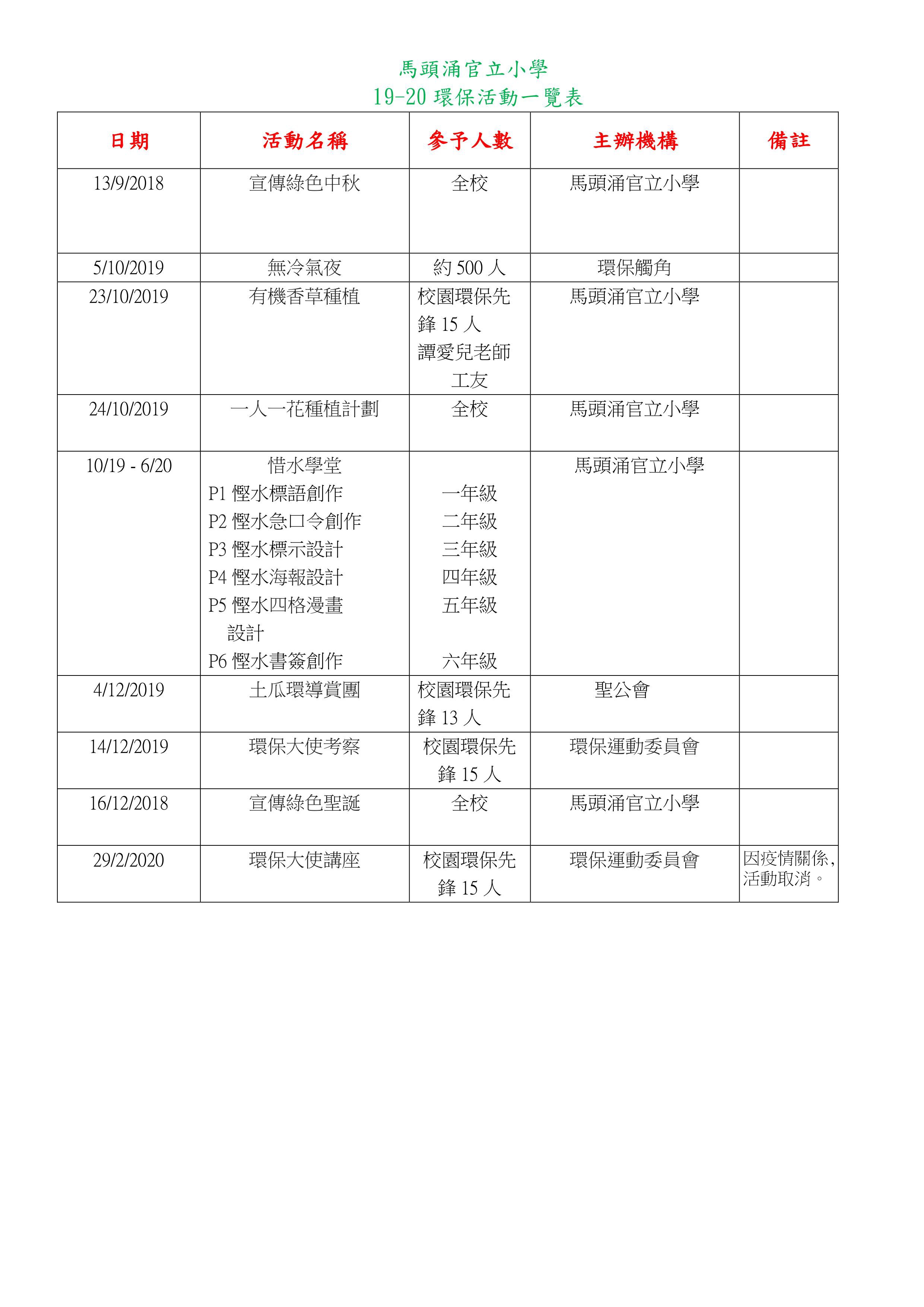 本年度通告及活動