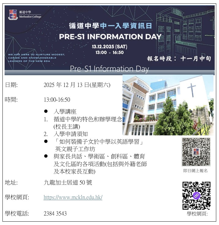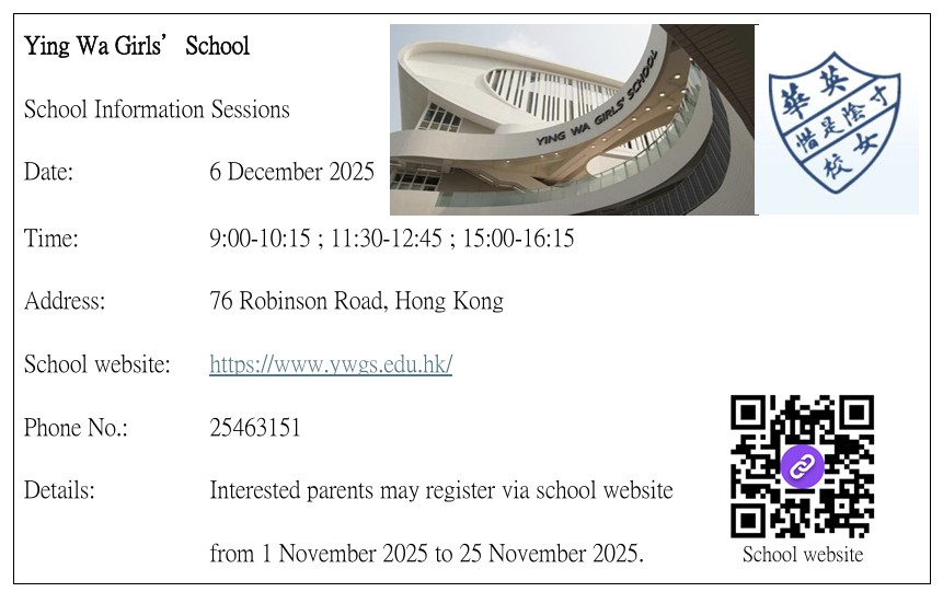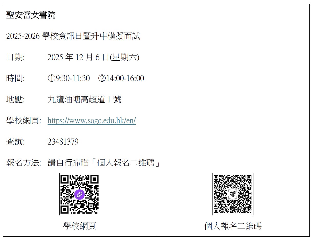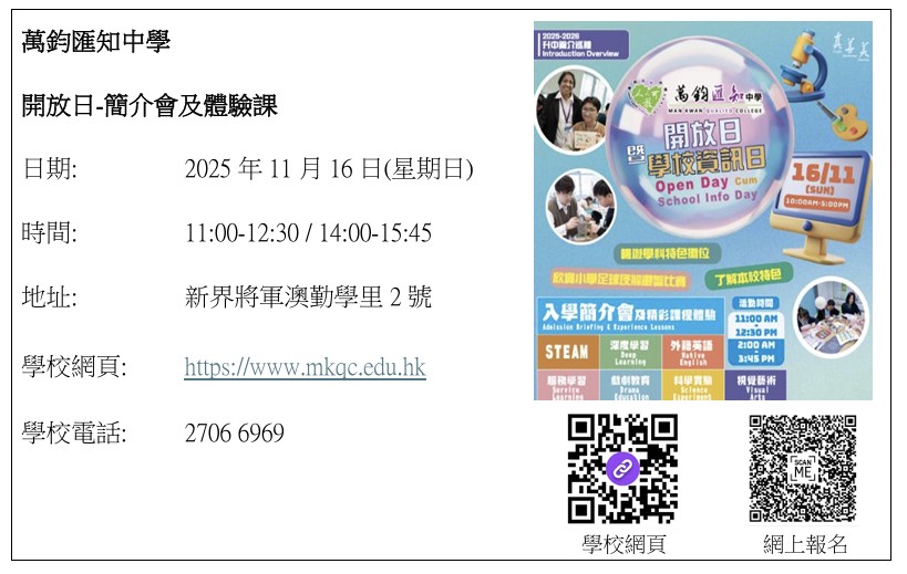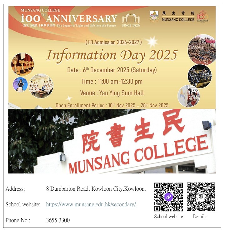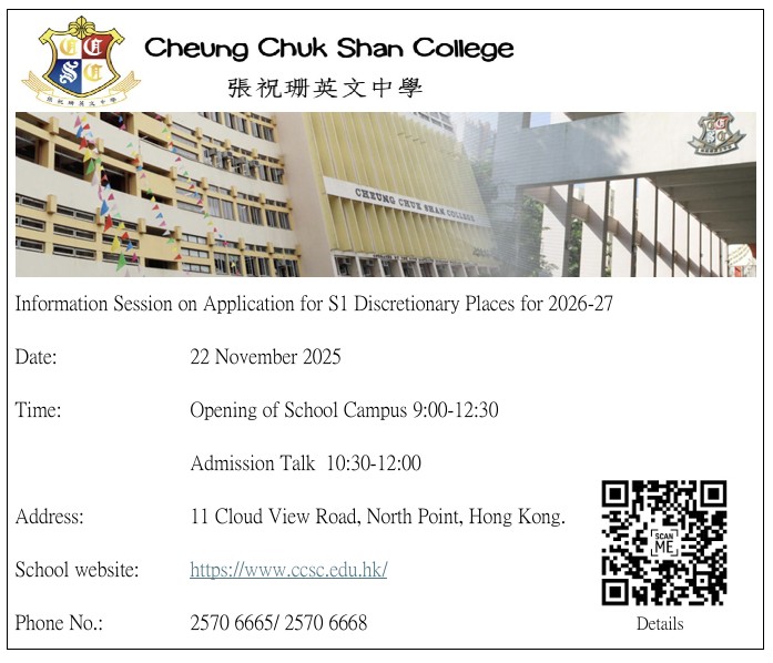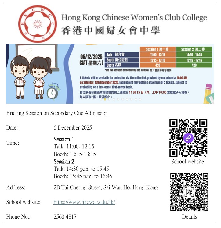 教育局「2024/2026年度中學學位分配辧法」單張