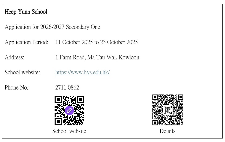 小一至小五插班生申請詳情