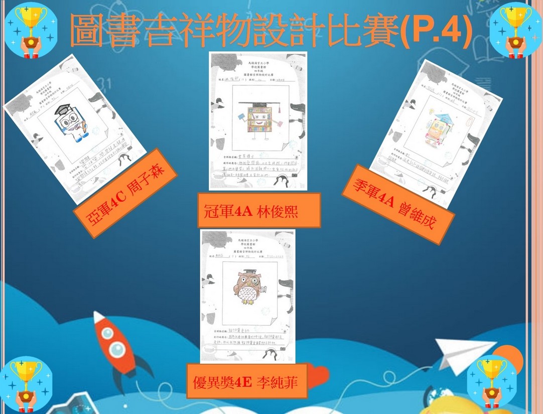 四年級圖書吉祥物設計比賽得獎者及作品