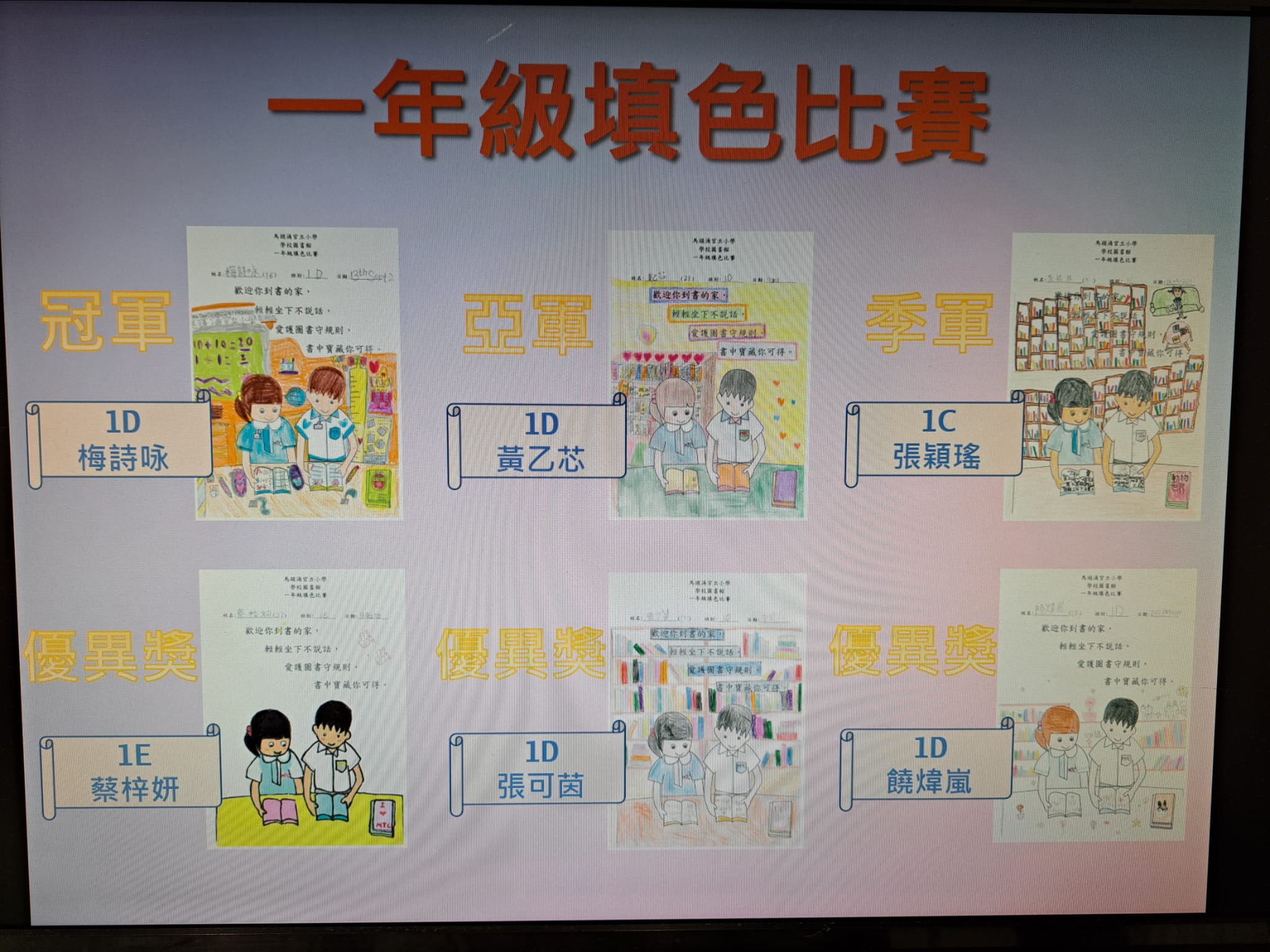 一年級圖書填色比賽冠、亞、季軍及優異奬