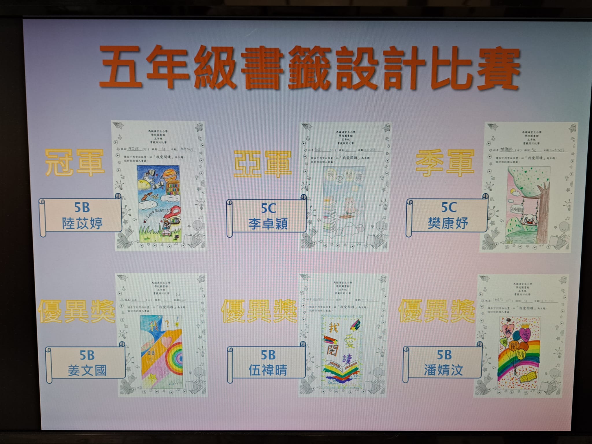五年級理想書籤設計比賽冠、亞、季軍及優異奬