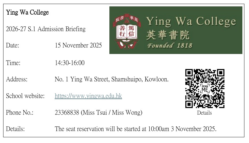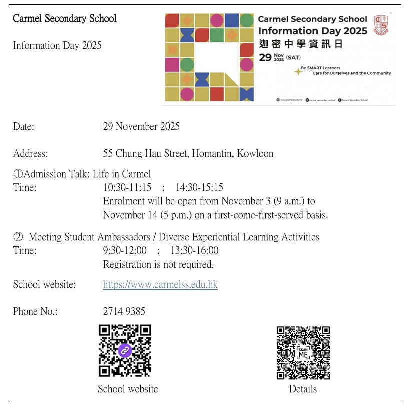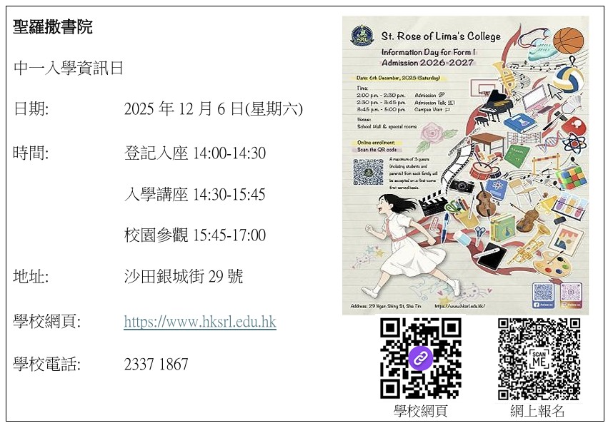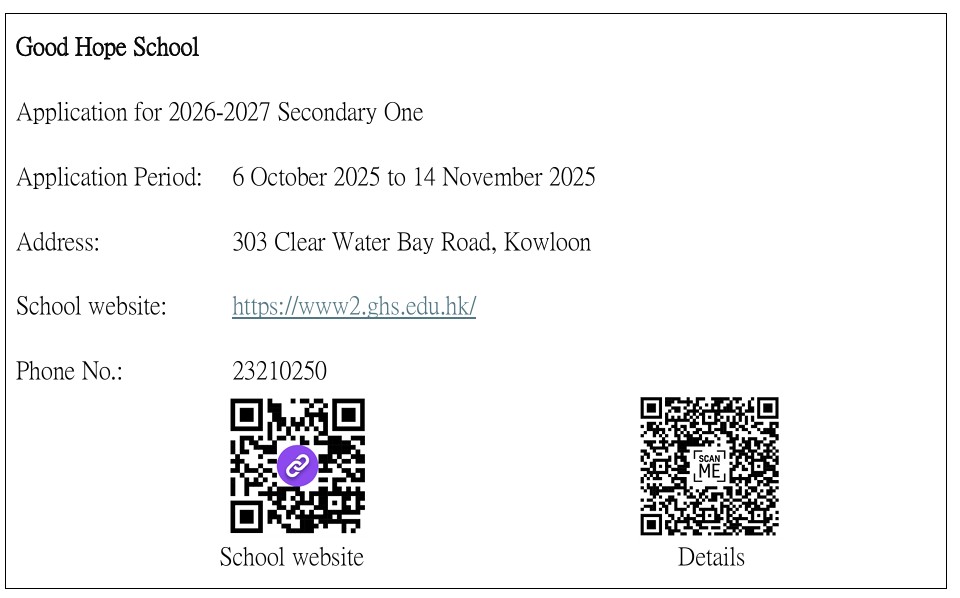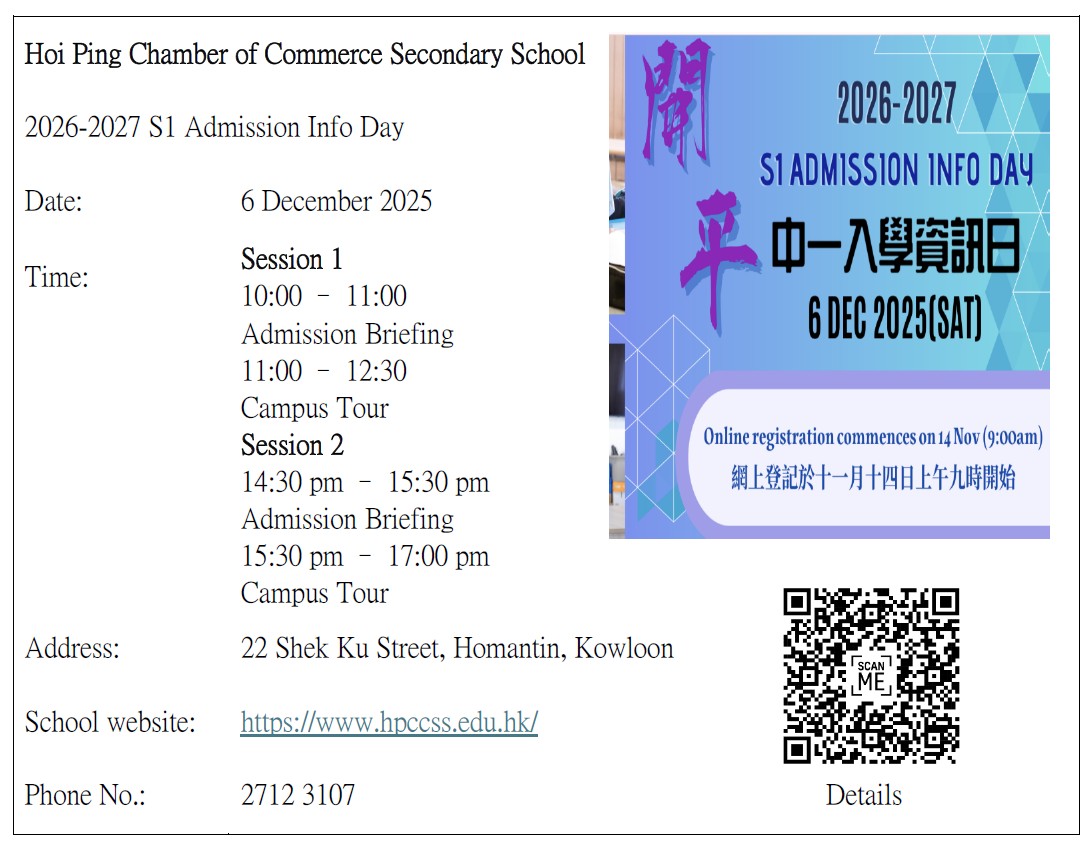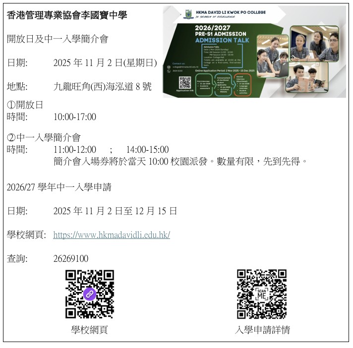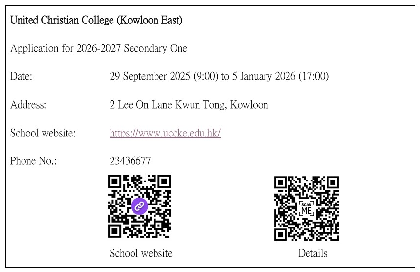 教育局「2024/2026年度中學學位分配辧法」單張