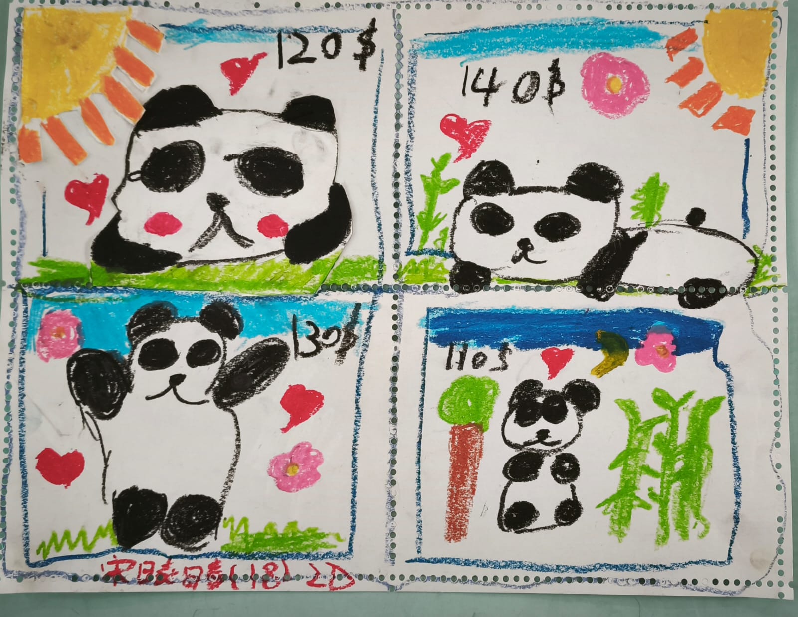 姓名:賴樂軒 班別:2C 作品名稱: 郵票設計_熊貓 |